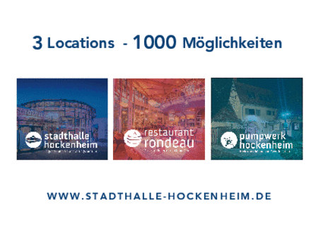 Schauen Sie sich um ... hier finden Sie tolle Events, Auftritte und Veranstaltungen der Stadthalle und Pumpwerk Hockenheim, einen Überblick über unser Raumangebot für Ihre Tagung, Möglichkeiten für Ihr nächstes Event und das kulinarische Angebot im Restaurant Rondeau finden Sie hier: [klick]